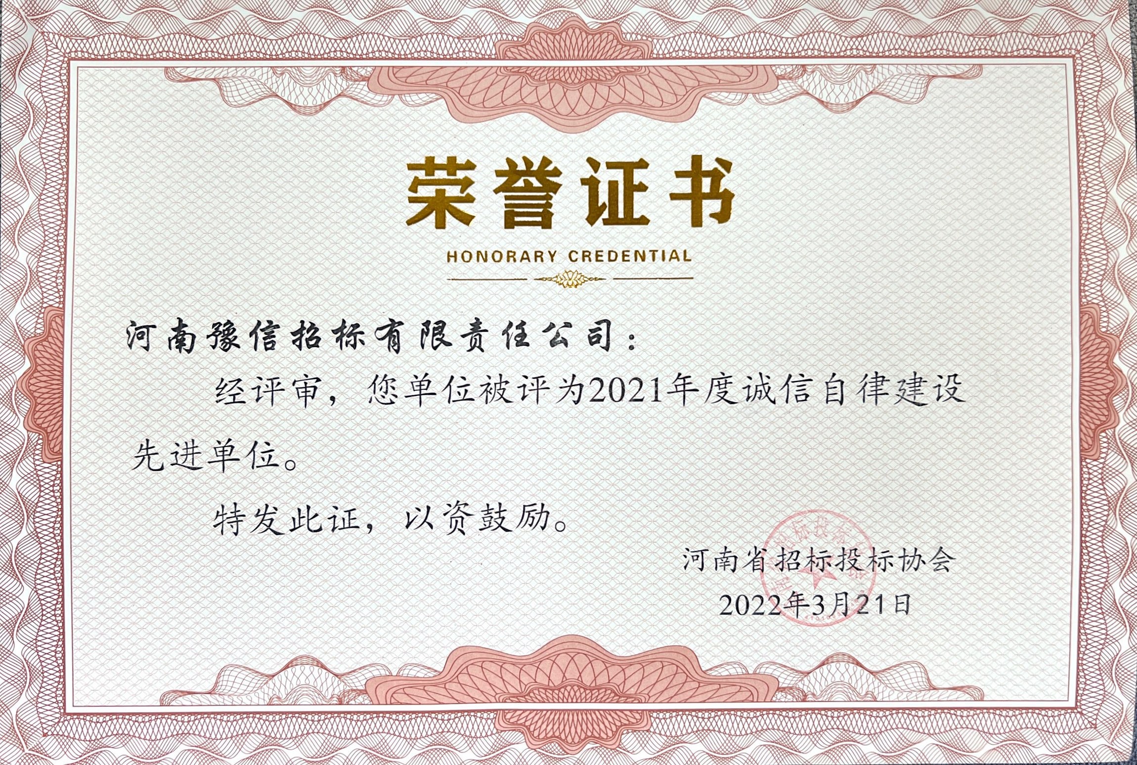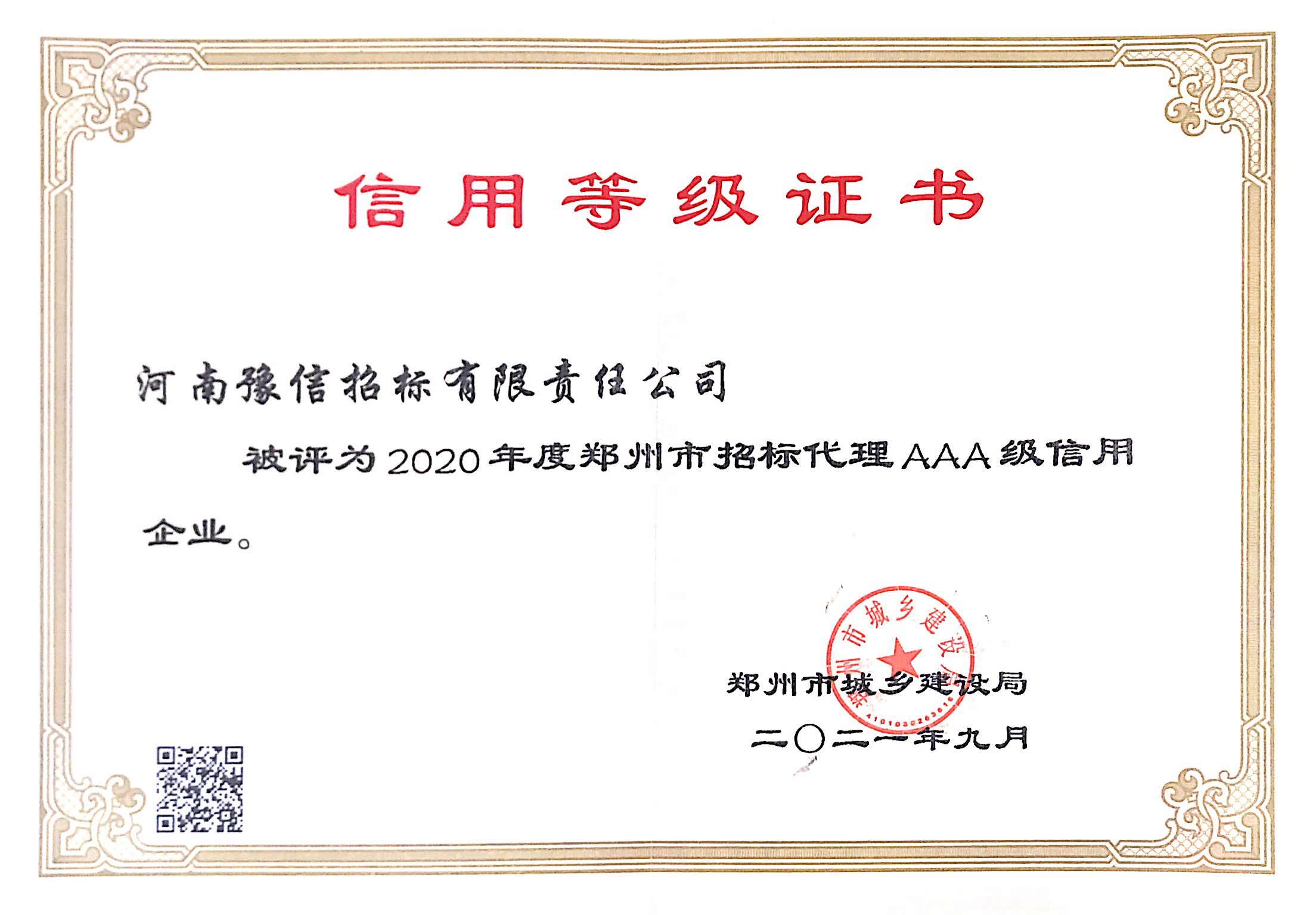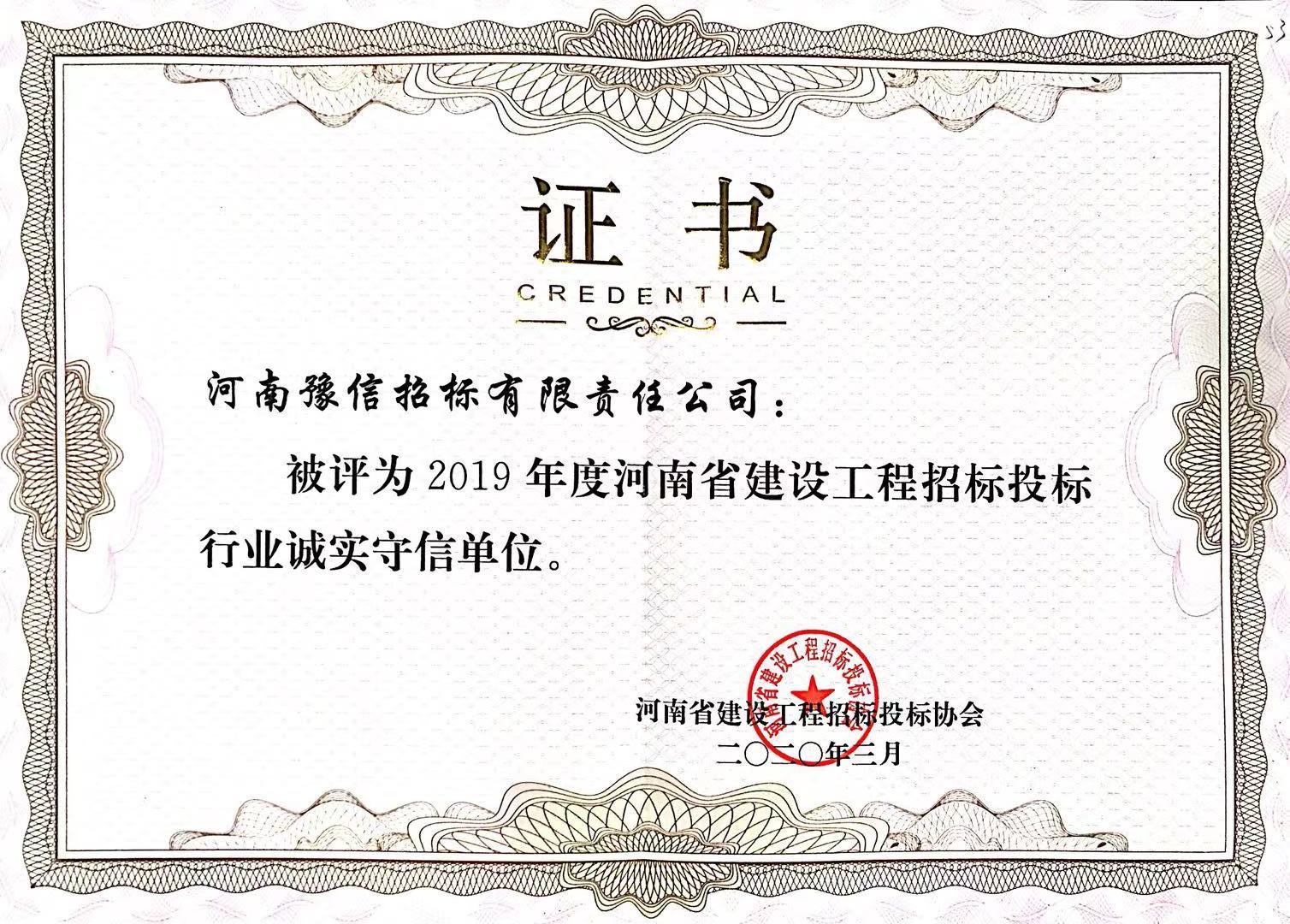 2020年度建設工程招標投標行業(yè)誠實守信單位