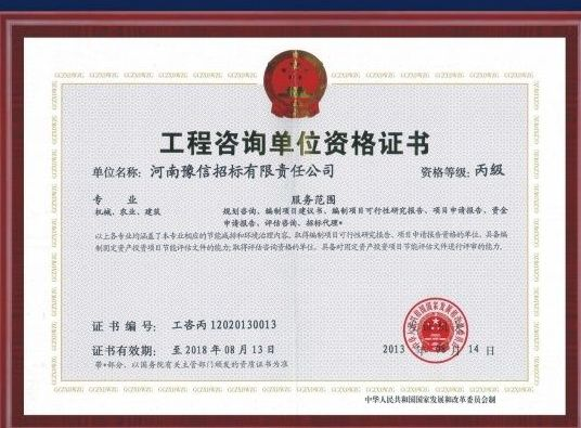 工程咨詢單位資格證書