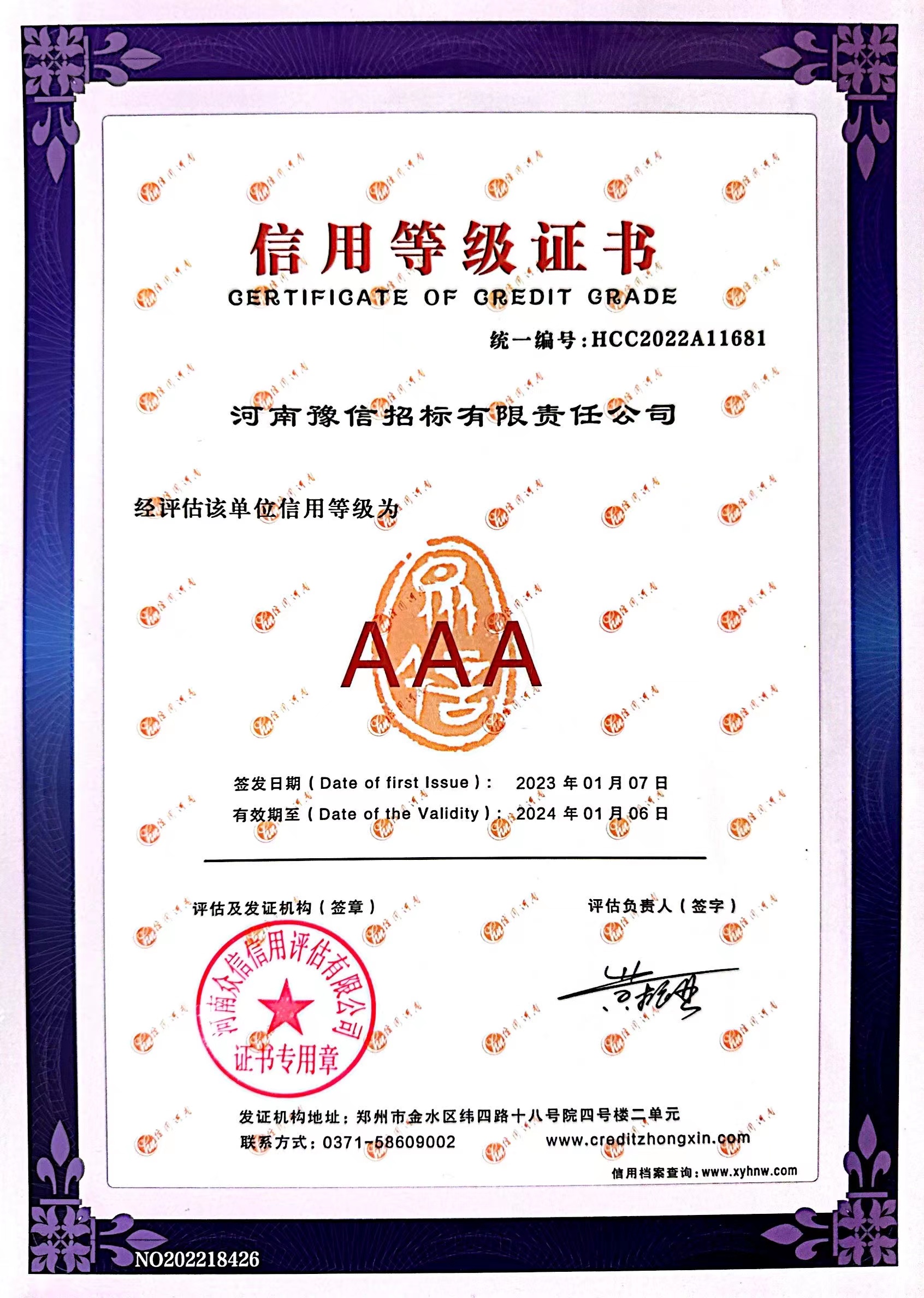 2022年度鄭州市招標代理機構 AAA 級企業(yè) -